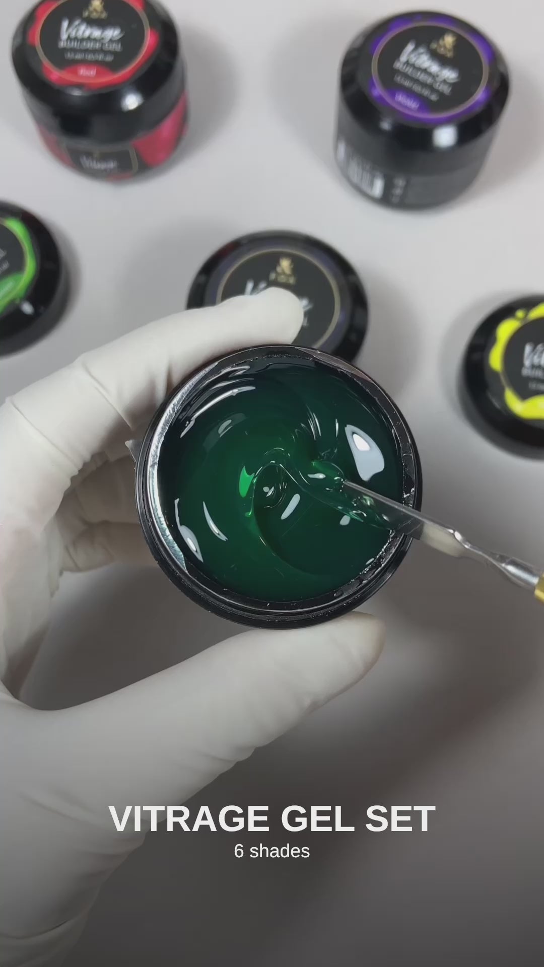 F.O.X Vitrage gel is a unique collection of stained glass translucent colored gels. They have a thick consistency, ideal for building on templates, modeling and strengthening the nail plate of any length and shape.